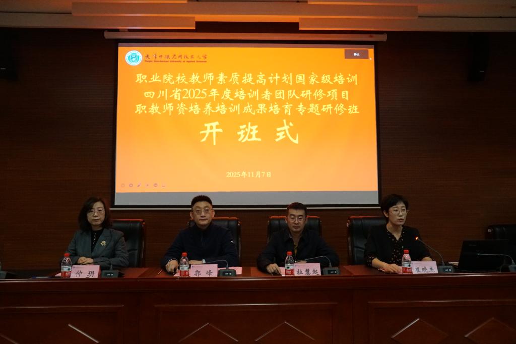 受四川省教育厅委托,职业院校教师素质提高计划国家级培训四川省2025年度培训者团队研修项目职教师资培养培训成果培育专题研修项目于2025年11月7日在我校顺利开班。天津中德应用技术大学党委常委、副校长郭峰出席开班式并致欢迎辞。