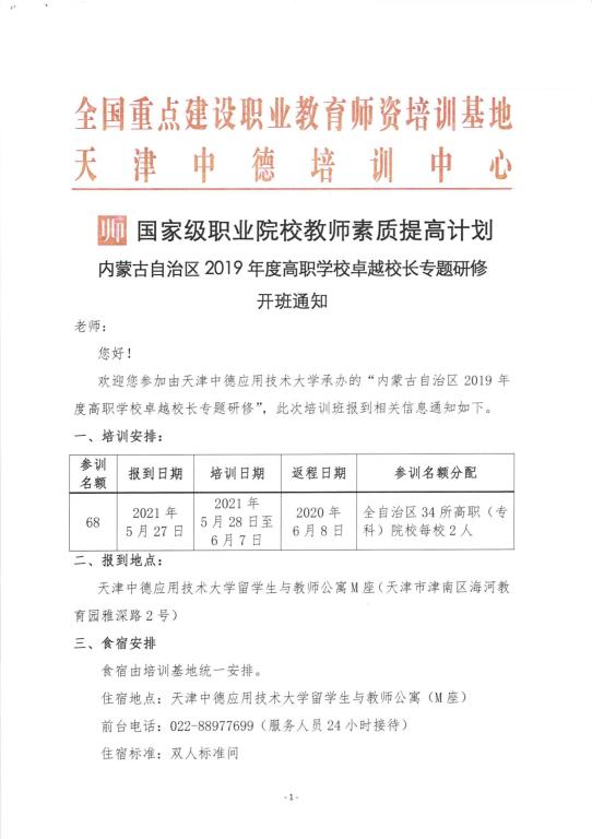 内蒙古自治区2019年度高职学校卓越校长专题研修开班通知