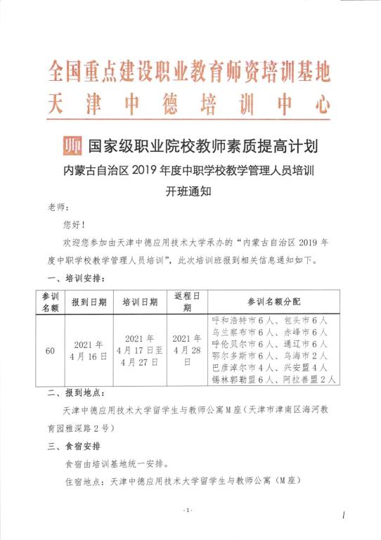 内蒙古自治区2019年度中职学校教学管理人员培训开班通知