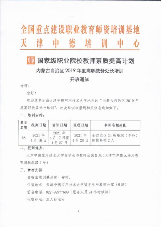 内蒙古自治区2019年度高职教务处长培训开班通知