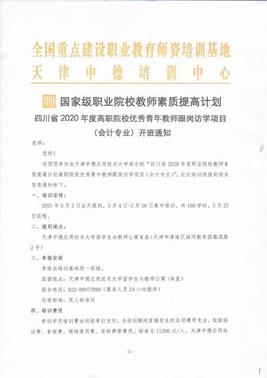 四川省2020年度高职院校优秀青年教师跟岗访学项目(会计专业)开班通知