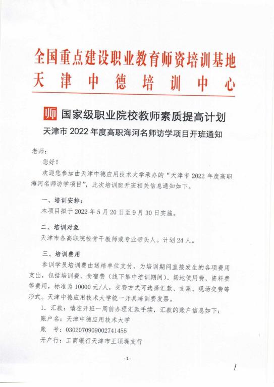 天津市2022年度高职海河名师访学项目开班通知